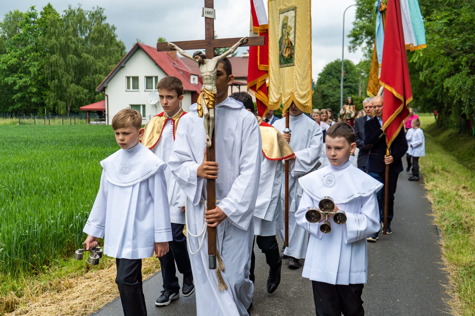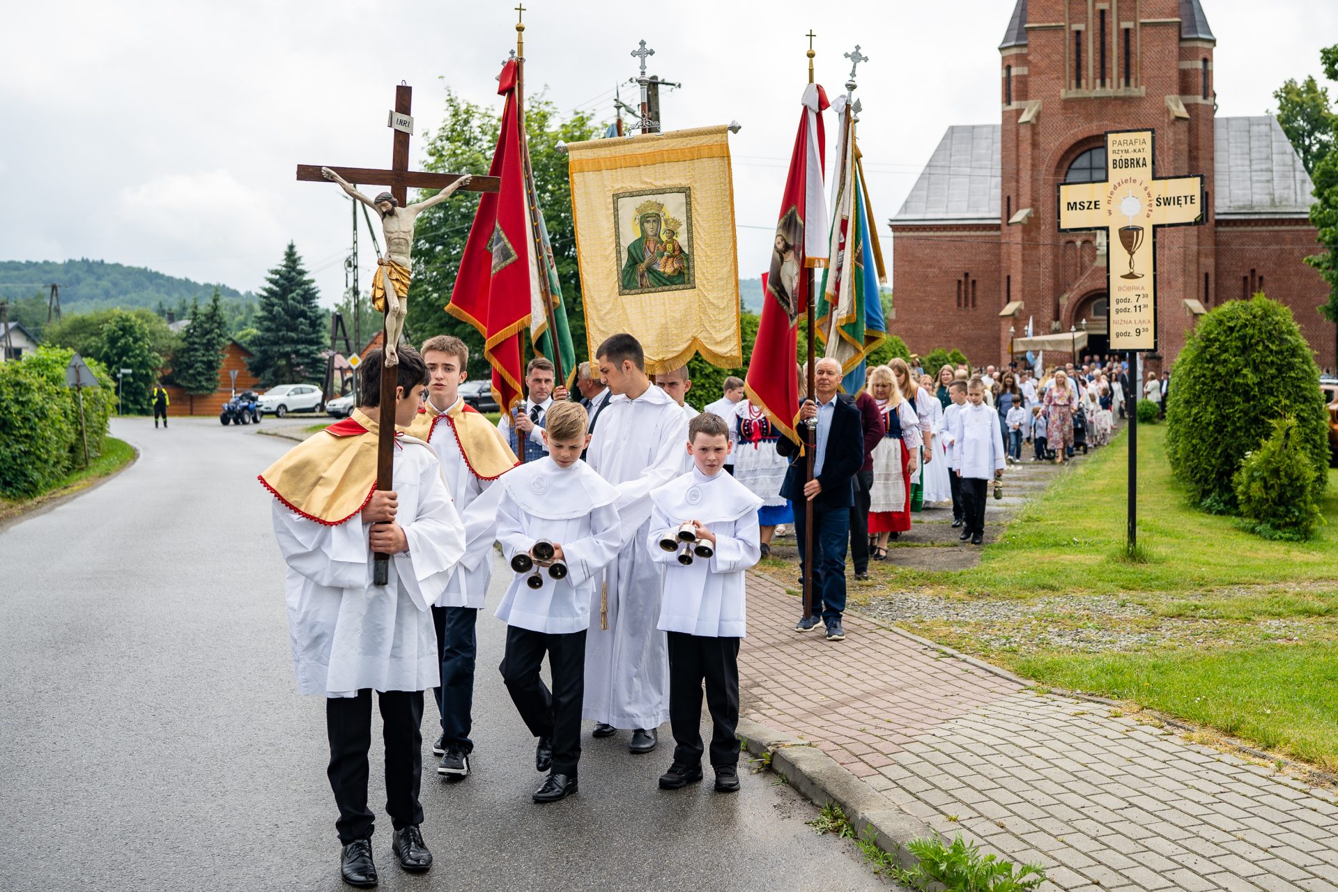 W tym roku Uroczystość Najświętszego Ciała i Krwi Pana Jezusa była przeżywana w Parafii Bóbrka bardzo okazale. Słyszeliśmy w Wielki Czwartek, że nie ma Eucharystii bez kapłaństwa, podobnie jak nie ma kapłaństwa bez Eucharystii. I właśnie dane nam było czcząc Jezusa Eucharystycznego, dziękować równocześnie za wielki dar sakramentu kapłaństwa w złoty Jubileusz święceń ks. Tadeusza Nowaka, który bał proboszczem Parafii Bóbrka przez 16 lat oraz jego kolegi kursowego ks. Karola Goneta, który chętnie posługuje w naszej parafii, gdy tylko jest taka potrzeba. Życzenia dostojnym Jubilatom złożyły liczne delegacje parafian z Bóbrki i Niżnej Łąki. A zaczęły się od przypomnienia słów bł. kard. Stefana Wyszyńskiego, który w miejscu odosobnienia, prześladowany i uwięziony przez władze komunistyczne napisał: „Gdybym dziś narodził się na nowo, a zapytany – jaką drogę życia obrałbym – bez chwili wahania wszedłbym na drogę kapłaństwa, choćbym od początku jasno wiedział, że skończę w okowach Chrystusowych, we wzgardzie szubienicy. Lepiej być wzgardzonym kapłanem niż uwielbionym Cezarem”.